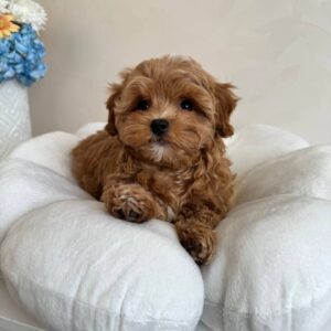 Introducing our Adorable Maltese Puppies-Benny, our charming Maltese, the first-born among his litter of five. Benny is everything you could ever want in a companion: sweet, playful, affectionate, and hypoallergenic. With his fluffy cream-and-apricot coat, expressive dark eyes, and soft curls, Benny looks like a living teddy bear. His adorable personality and loyal nature make him a perfect fit for any family.